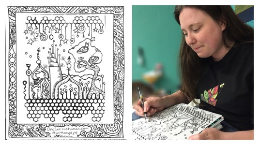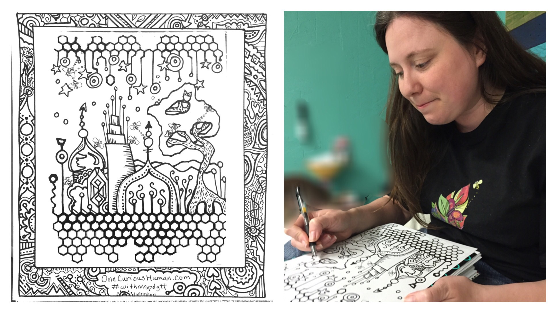 Tags: #withmspdgtt, art about bees, bee art, beecity, bees, bees in art, bumble bee, coloring, coloring book for adults, coloring page, coloring pages, hex, hexagon, hexegon, honeybee, honeybees, honeycomb, imaginary, one curious human, onecurioushuman, tree