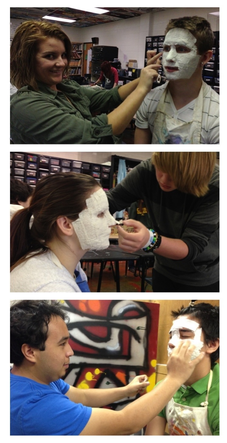 Students create plaster molds of their faces in preparation for Dios de los Muertos masks