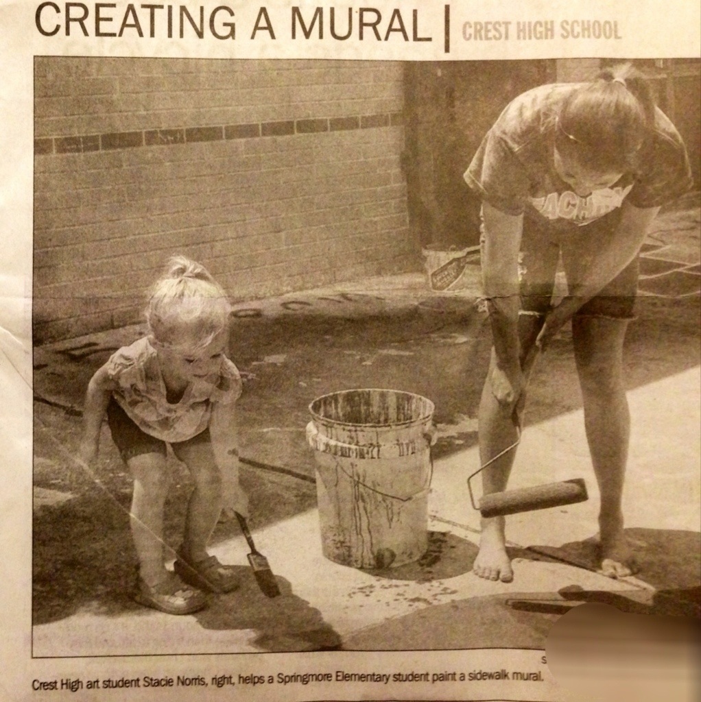 05 Jun 2013 Comments Off on Shelby Star published this Photo of Stacie and her little helper working on a ground mural