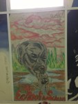 The ceiling of the art classroom is an honored tradition of advanced art students that has been ongoing since the 1970s. Alumni frequently stop by on parent-conference or open house nights to show the tile that they created to their child who is now a student. We are very proud of the ceiling of the art room as it represents the skill and study of so many students, as well as documenting the changing views over time. This site attempts to catalogue the tiles. If you have additional information about a tile that could be added to our site, please let us know.